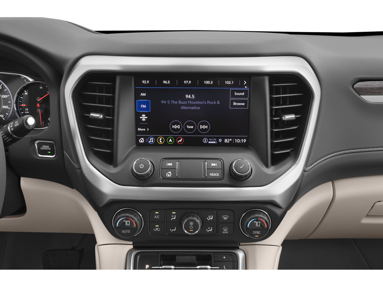 - Audio system, 8" diagonal GMC Infotainment System with Navigation includes multi-touch display, AM/FM/SiriusXM stereo, BluetoothĀ® streaming audio for music and most phones, Android Auto and Apple CarPlay capability for compatible phones, advanced voice recognition, in-vehicle apps, personalized profiles for infotainment and vehicle settings